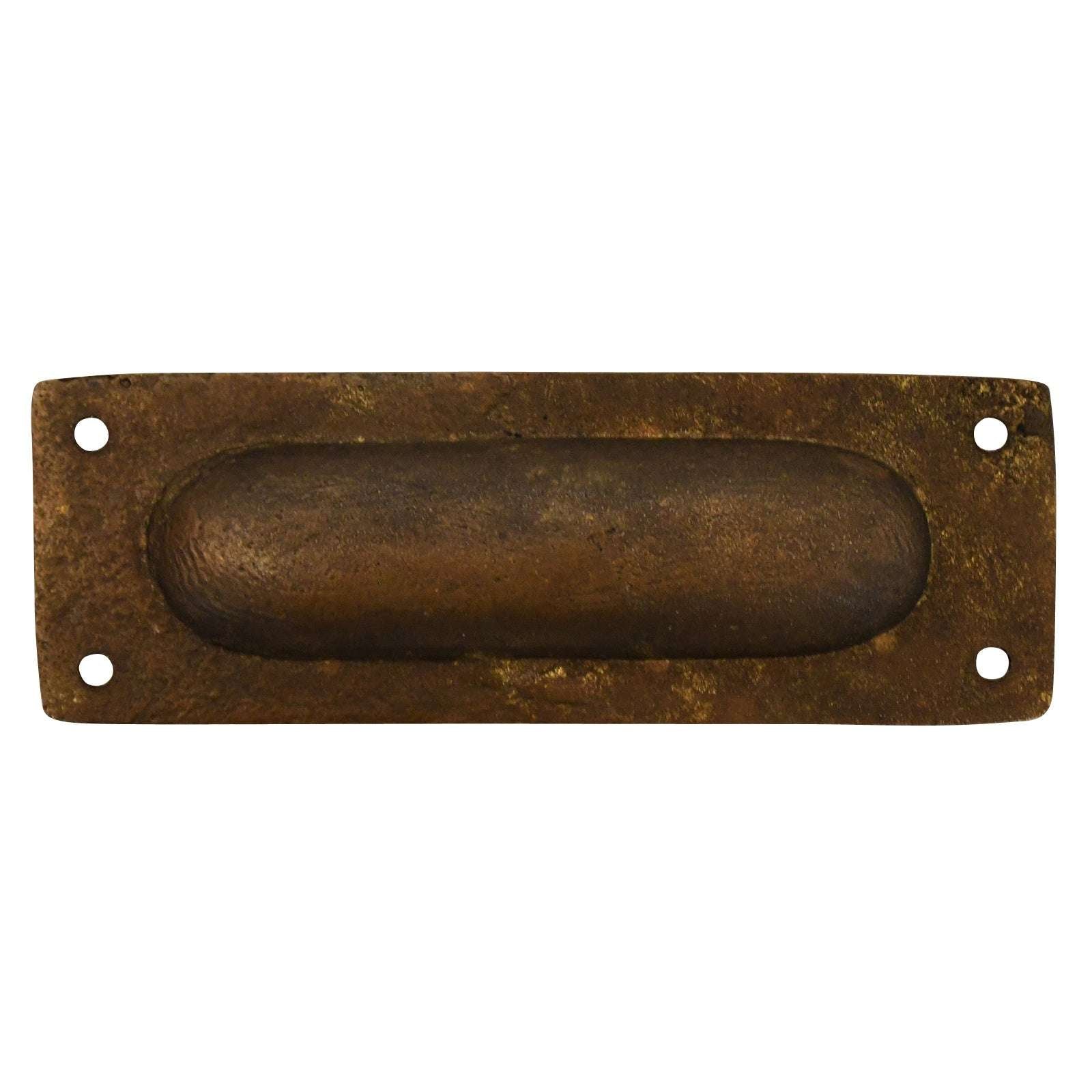 Deze rechthoekige inbouwgreep is ontworpen voor schuifdeuren en andere toepassingen waarbij een platte afwerking gewenst is. Dankzij de verzonken plaatsing is deze greep ruimtebesparend en uiterst geschikt voor situaties waar uitstekende elementen niet gewenst zijn. De gietijzeren afwerking geeft het geheel een stoere, authentieke uitstraling die perfect past in industriële, landelijke of vintage interieurs.