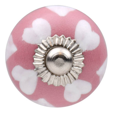 Meubelknop 30mm – Porselein roze met witte hartjes