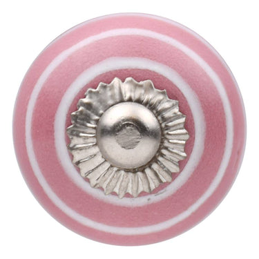 Meubelknop 30mm – Porselein roze met witte strepen