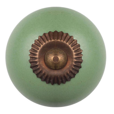 Geef kasten en lades een karaktervolle upgrade met deze groene porseleinen meubelknop met bronskleurig rozet. De frisse groentint brengt meteen warmte in landelijk, vintage en Scandinavisch interieur en de gladde, ronde vorm ligt comfortabel in de hand.