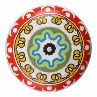 Geef je meubels een opvallend en karaktervol accent met de Meubelknop 40mm Happy Industrial I. Deze porseleinen meubelknop heeft een levendig motief in rood, groen, geel, blauw en zwart, omlijst door een decoratieve rand. Het kleurrijke ontwerp past perfect bij vintage, industriële en bohemian interieurs, en geeft zowel oude meubels als nieuwe kasten direct een unieke uitstraling.