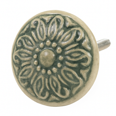 Geef je meubels een stijlvolle en tijdloze upgrade met deze prachtige porseleinen meubelknop in wit/groen. Deze porseleinen knop is met de hand vervaardigd van hoogwaardig keramiek en afgewerkt met een glanzend glazuur in een warme vintage groene tint. Het fijne bloemenreliëf voegt een elegant en klassiek accent toe aan elk meubelstuk, waardoor deze knop zowel functioneel als decoratief is.