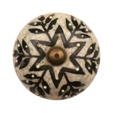 Deze porseleinen meubelknop 41mm grijs beige met zwart bloemmotief brengt verfijning en karakter samen in één elegant accent. De neutrale grijs-beige basis wordt aangevuld met een krachtig grafisch patroon in zwart, waardoor deze kastknop zowel subtiel als expressief oogt. Een perfecte keuze voor wie net dat beetje extra flair aan zijn meubels wil toevoegen.