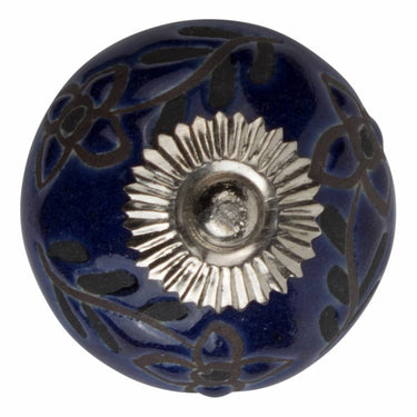Add a timeless, decorative lift to cupboards and drawers with this porcelain cabinet knob in deep dark blue, finished with a black floral motif and silver-coloured crown and footplate. The hand-painted pattern gives each piece a subtly unique character, while the Ø 40 mm face provides a comfortable grip. A simple bolt-through fit makes it an easy, durable upgrade for classic, country and vintage schemes.