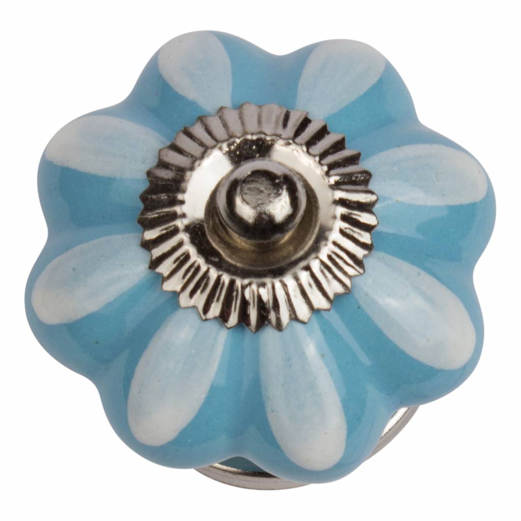 Flower-shaped porcelain cabinet knob with silver-colored rosette