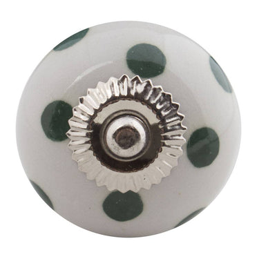 Give cabinets and drawers a fresh and playful upgrade with this porcelain furniture knob in white with green polka dots . The round design with a silver-colored decorative rosette fits effortlessly into rustic, vintage, and boho interiors and adds a welcoming touch to any piece of furniture.