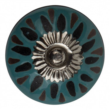 Give furniture a stylish, nostalgic lift with this blue/black porcelain cabinet knob featuring a relief (embossed) design and a silver-coloured rosette. Comfortable in daily use at Ø 40 mm with a neat 29 mm height, it suits classic, country and bohemian schemes. A tidy rear fixing with the 4 × 60 mm bolt keeps fronts clean and installation quick. As porcelain is a natural material, slight variations in colour and relief make each piece quietly unique.