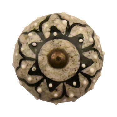 Porcelain Cabinet Knob Ø 42 mm – Grey/Beige Floral