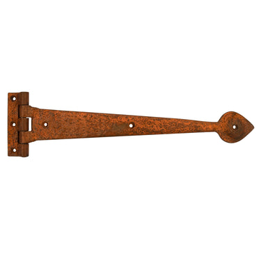 A long, tapered cast iron hinge with a teardrop tip that adds instant character to doors. At 4 mm thick, it delivers reassuring strength for everyday use, with a textured, traditional look that suits rustic and industrial schemes. Choose black lacquer for a clean line or rust with clear lacquer for a warm, weathered feel. Pre-drilled and supplied with matching screws for straightforward fitting.