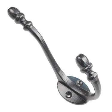 This cast iron coat hook in the Acorn style combines timeless elegance with everyday durability. The black powder coating provides a sleek, durable finish that perfectly complements classic, rustic, and industrial interiors. The elegant knobs on the top and bottom hooks give it a refined look without compromising its load-bearing capacity.