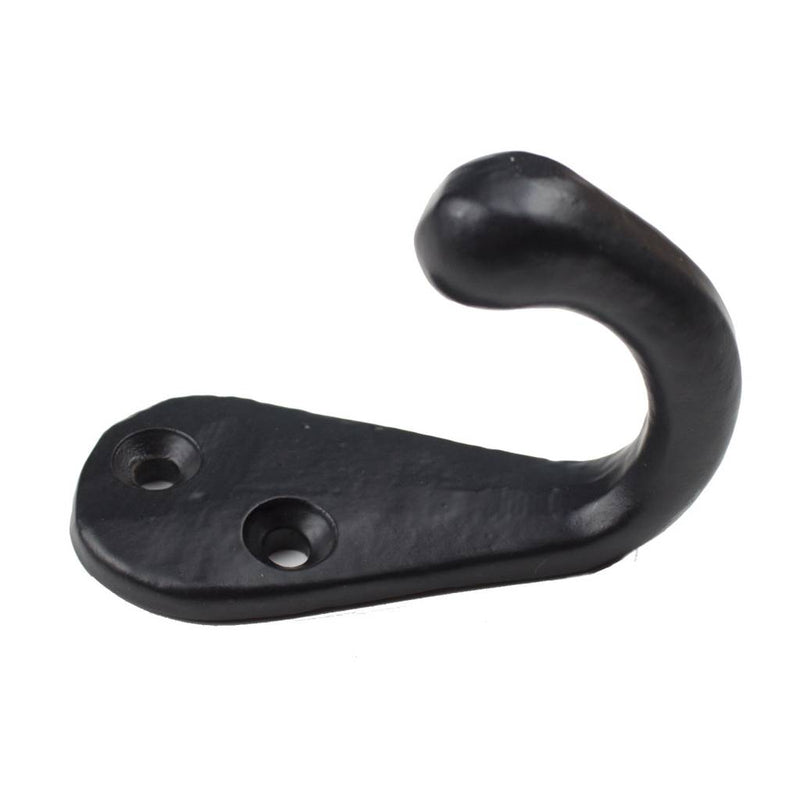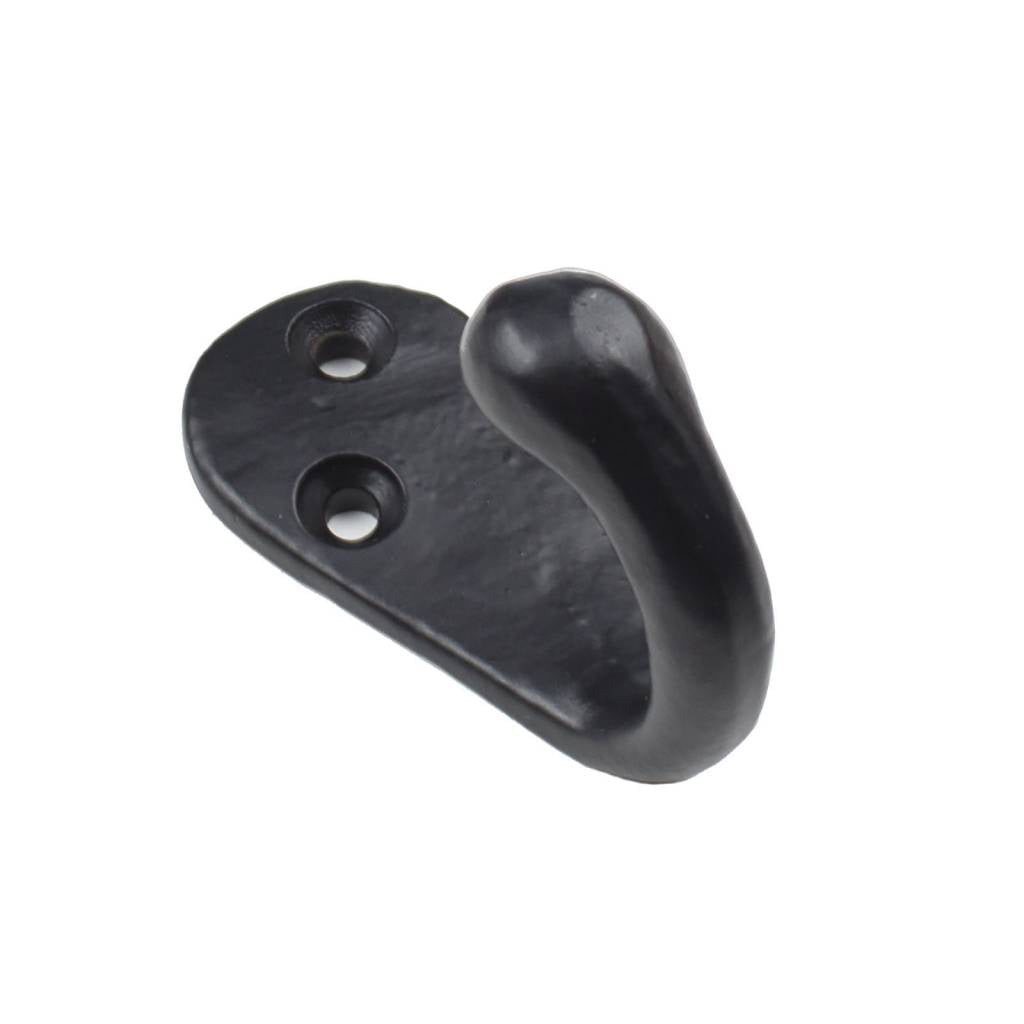 This cast iron coat hook is a compact, single hook that can hold a lot without being conspicuous. The black finish gives it a subtle, timeless look that suits a hallway, kitchen, or bathroom. Its rounded shape keeps coats and bags neatly hung.