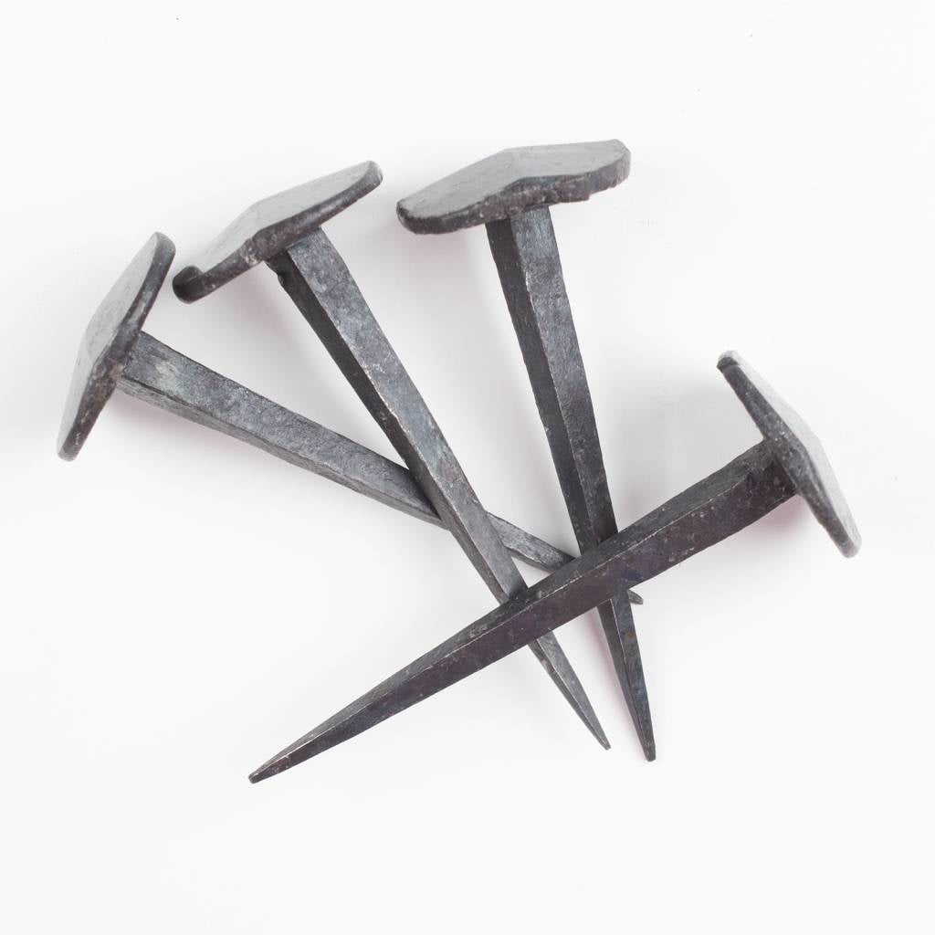 Made of solid wrought iron and available in black lacquer or dark beeswax . Due to the handcrafted nature of each nail, each nail is unique; slight size or color variations and a slightly longer delivery time for larger quantities are possible.