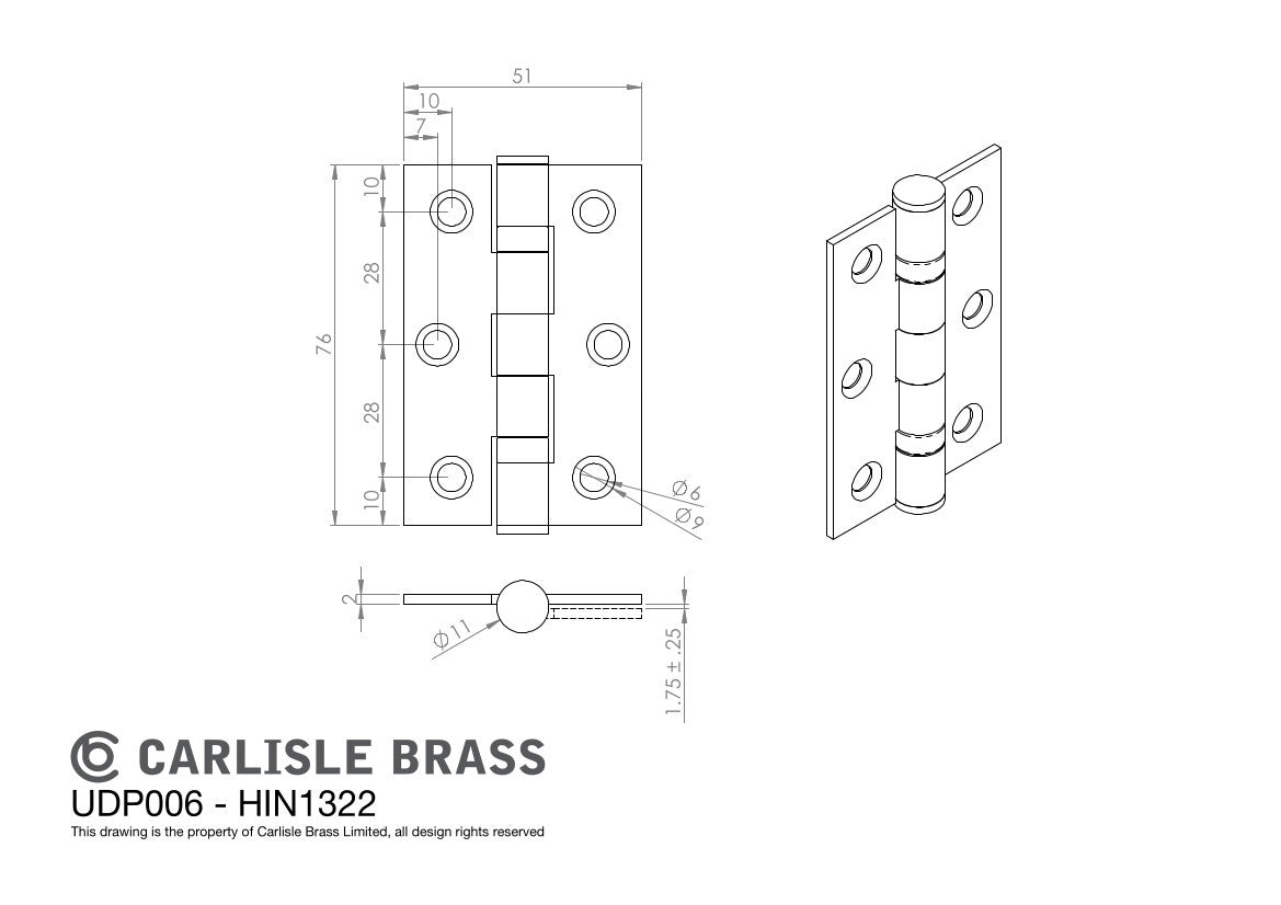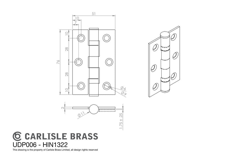 Bearing butt hinges (76 mm) for dependable day-to-day action.