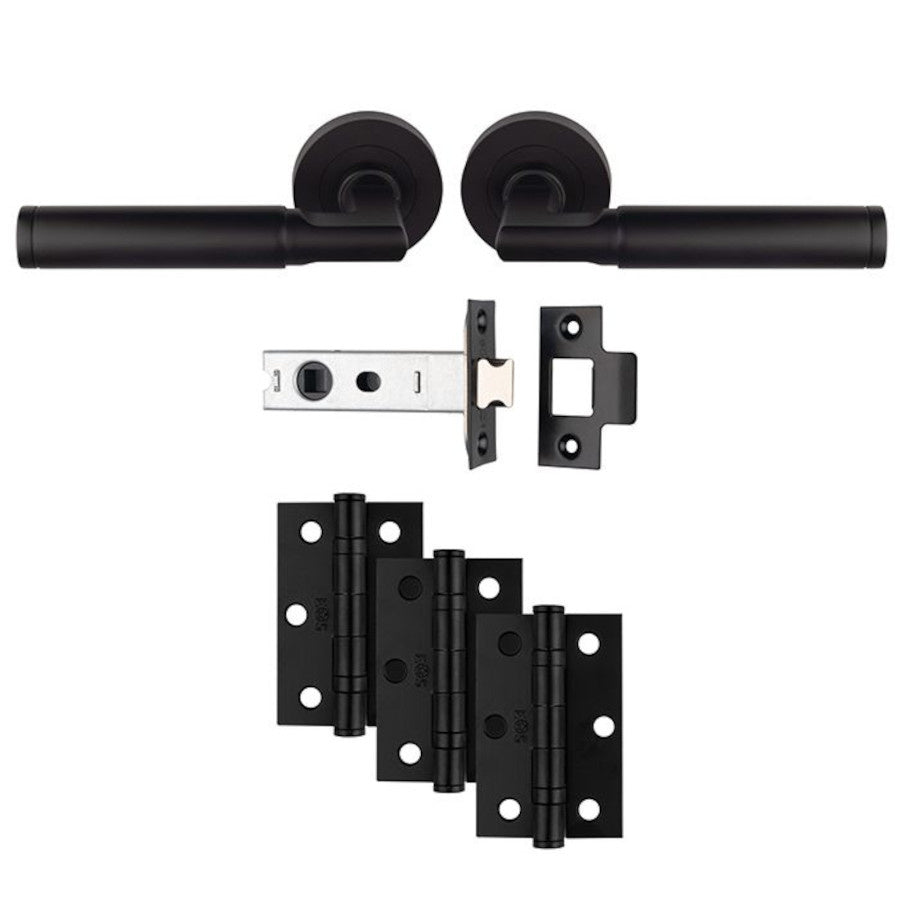 Create a clean, consistent door look with this all-in-one black set. The Belas lever features concealed fixing for a tidy finish, while the included 76 mm bearing hinges support smooth, reliable everyday use. A CE-accredited passage latch completes the package, so you can install with confidence. Designed for interior doors and supplied with fixings, it’s a smart, durable choice that suits modern and classic spaces alike.