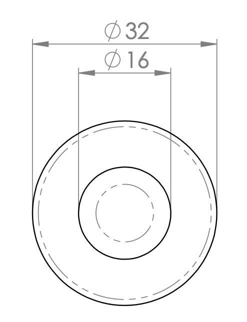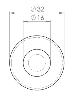 Size/Dimensions: Ø 32 mm footplate; Ø 16 mm stopper; projection 70 mm; weight 140 g