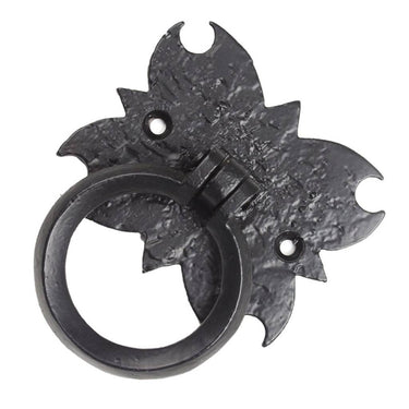 Cast iron ring handle with decorative plate – black 84×70 mm (ring Ø54)