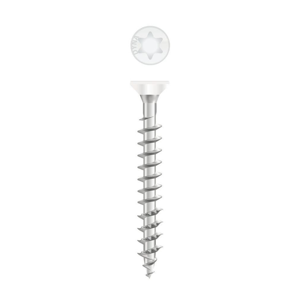 Install fittings cleanly and securely with Dynaplus® TX-20 flat head screws, finished in white or black lacquer for a tidy look. The small head without cutting ribs protects your hinges, plates and roses during installation, keeping the hardware surface intact.