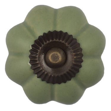 Green Porcelain Flower Knob Ø 40 mm – Bronze