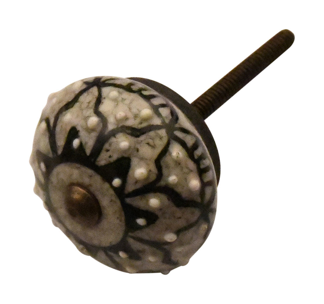 Bring calm character and refined contrast to furniture with this porcelain cabinet knob in soft grey-beige, finished with a crisp black floral motif. The glossy glaze catches the light gently, adding a subtle highlight without overwhelming the piece.