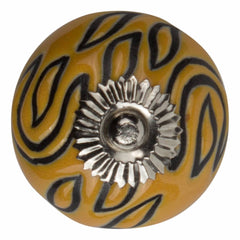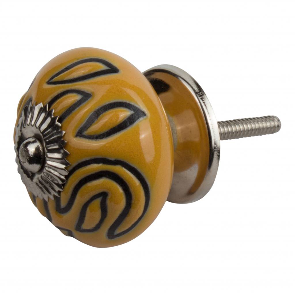 Porcelain Cabinet Knob Ø40 mm – Old Yellow/Black Relief