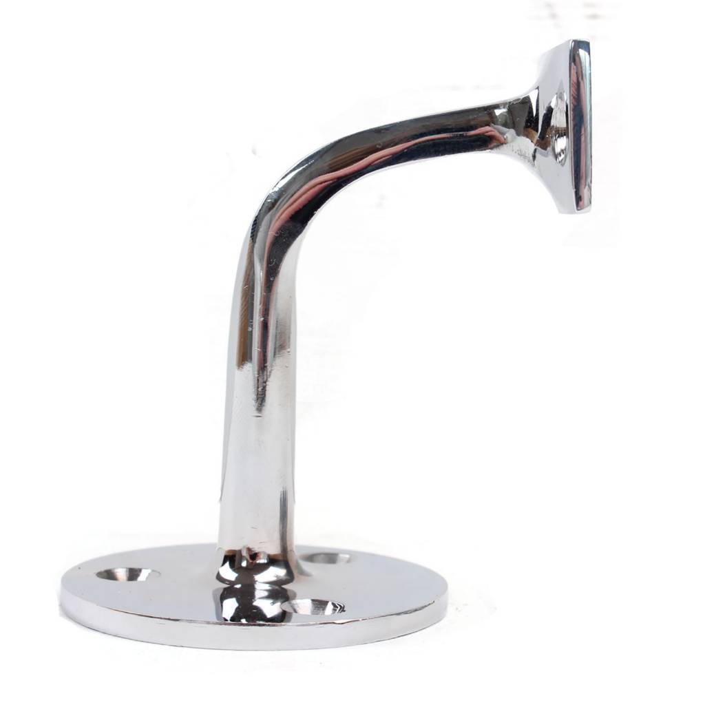 This nickel stair rail bracket combines a stylish finish with sturdy support . The solid cast iron with polished nickel finish looks luxurious and stands up to daily use. The 68 mm gap between the wall and the center of the saddle provides comfortable grip and makes your stairs safer.