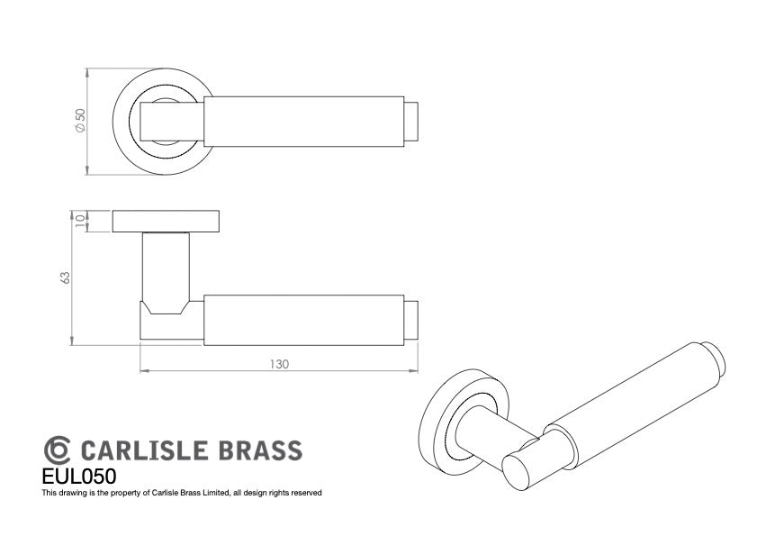 Size/Dimensions: Handle 130 mm; projection 63 mm; rose Ø 50 × 7 mm