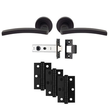 A clean, coordinated upgrade for interior doors. The Tavira lever’s subtle curve gives a comfortable, ergonomic grip, while the concealed rose keeps the look crisp. Three finishes—Black, Polished Chrome or Satin Nickel—let you match modern or classic schemes. Supplied as a full set with hinges and a CE-accredited passage latch for everyday residential use.