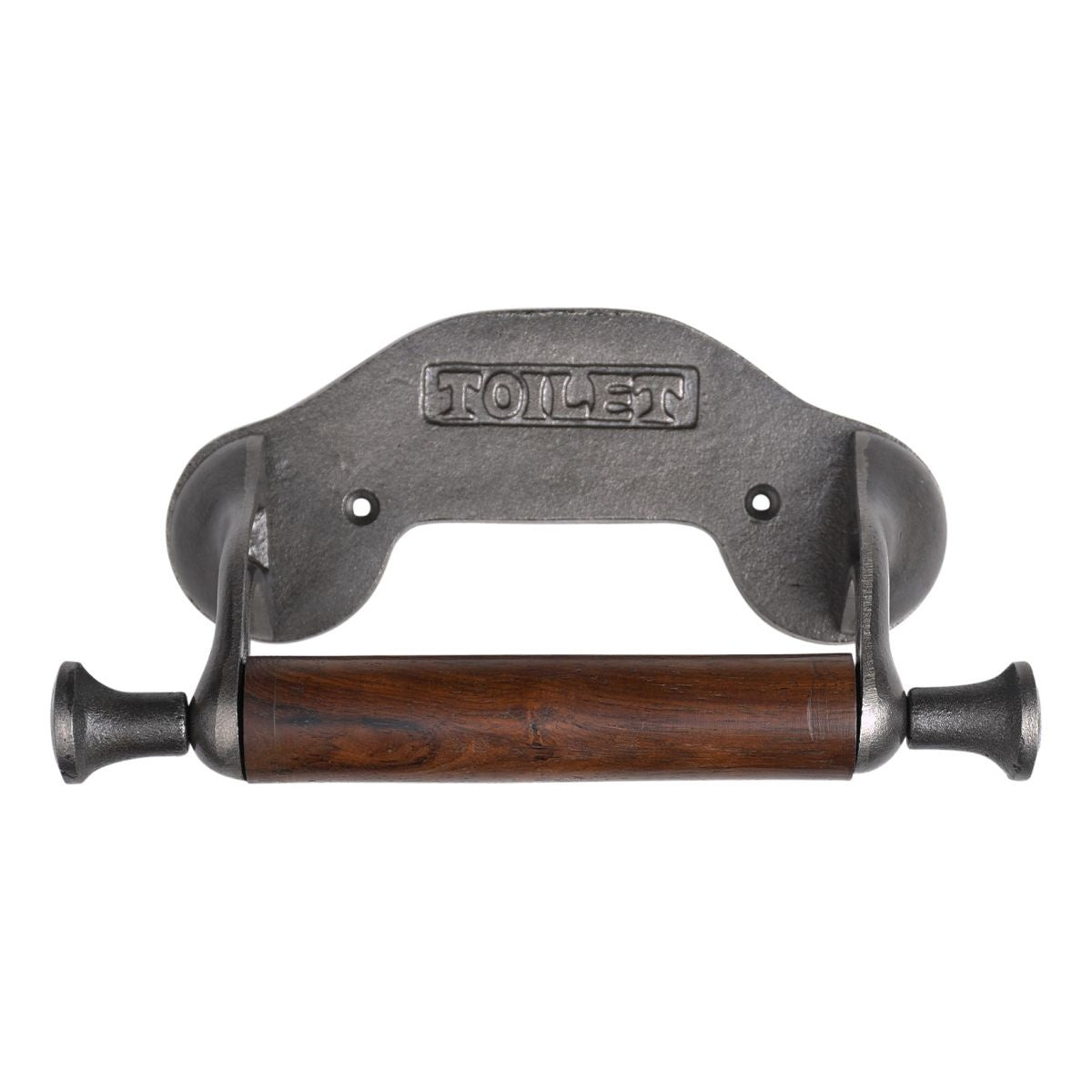 Cast-Iron Toilet Roll Holder with Wooden Dowel