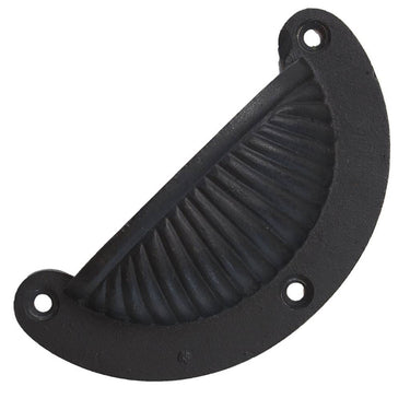 Zwarte cup-/schelpgreep met zonmotief voor kasten en laden