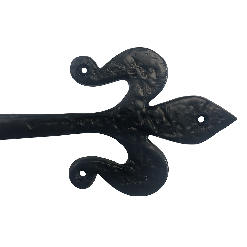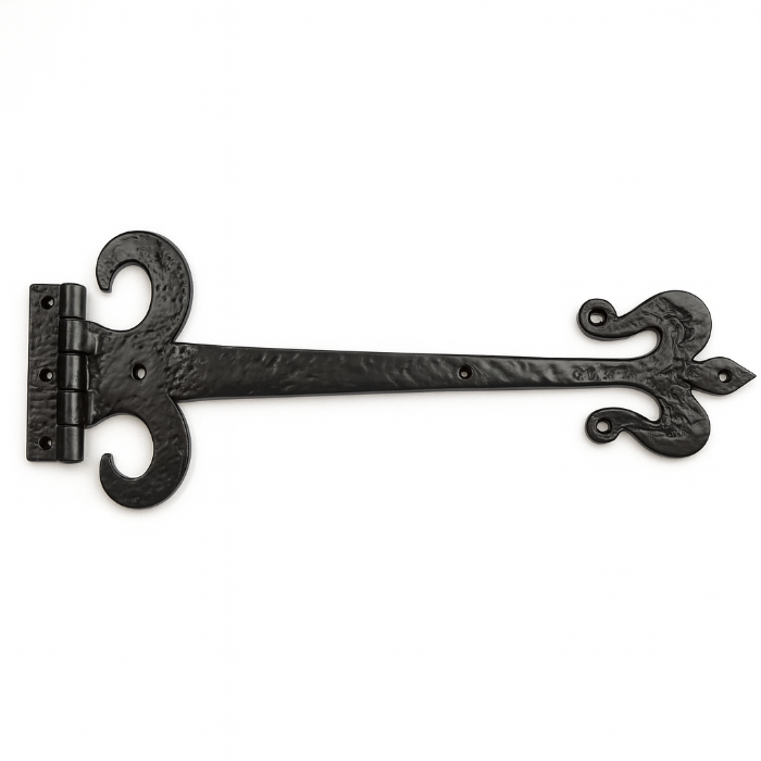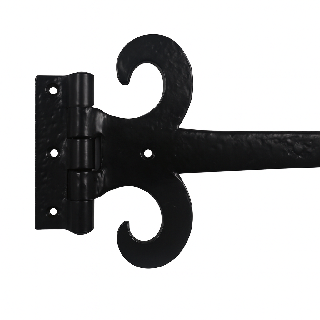 Dit zware gietijzeren scharnier geeft deuren, kasten en luiken een authentieke, klassiek-sierlijke look. De zwarte afwerking en het decoratieve uiteinde maken ‘m ideaal voor landelijke en industriële interieurs – én als stoer accent aan tuindeur of schuur (buiten bij voorkeur extra beschermen tegen weer).