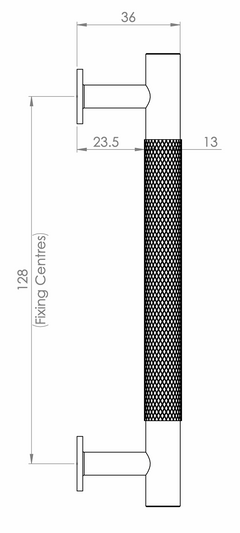 128 mm: Totale lengte 159 mm / Hoogte 36 mm