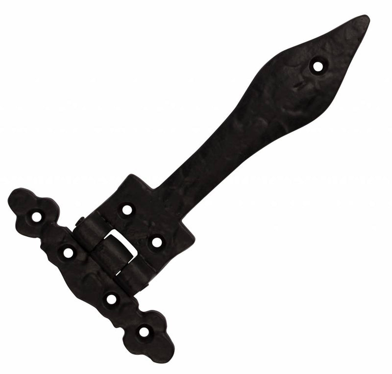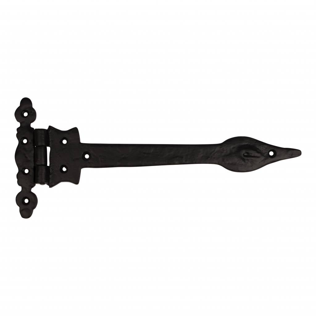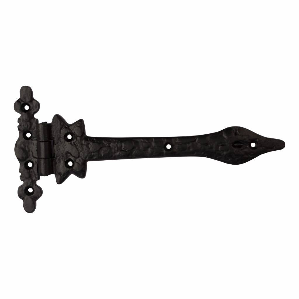 Dit gietijzeren scharnier met klassieke smeedlook geeft kasten en luiken meteen nostalgische charme. De zwarte laklaag is slijtvast en past moeiteloos bij landelijk, vintage én industrieel interieur. Verkrijgbaar in 160, 239 of 285 mm, zodat je altijd de juiste maat voor jouw project kiest.
