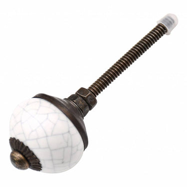 Geef kasten en lades een subtiele vintage upgrade met deze porseleinen meubelknop met fijn craquelé-effect. Verkrijgbaar in wit, met een warm bronskleurig rozet dat direct charme toevoegt aan keukens, dressoirs en kinderkamers.
