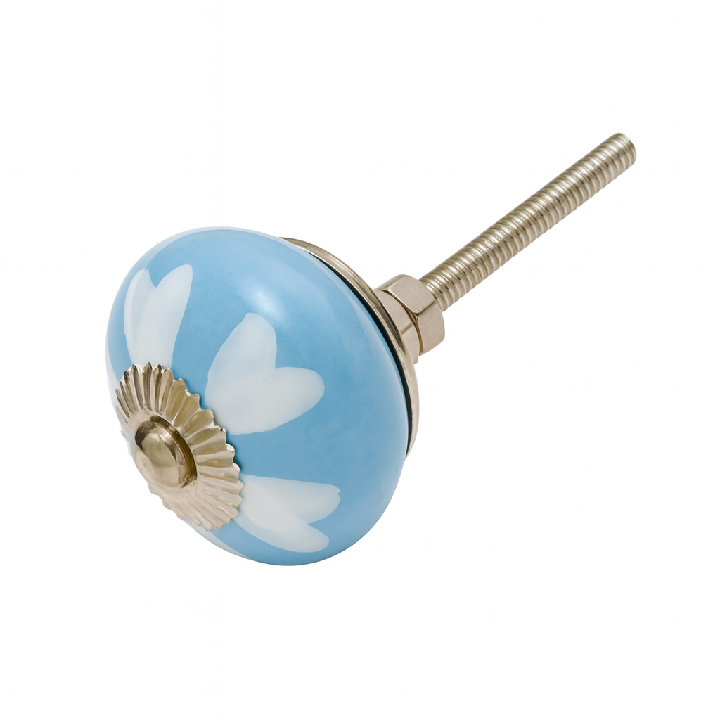 Zachtblauwe porseleinen knop met witte hartjes