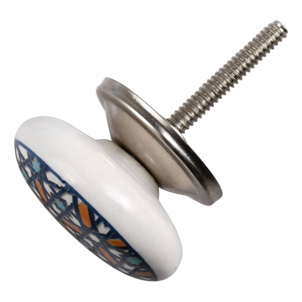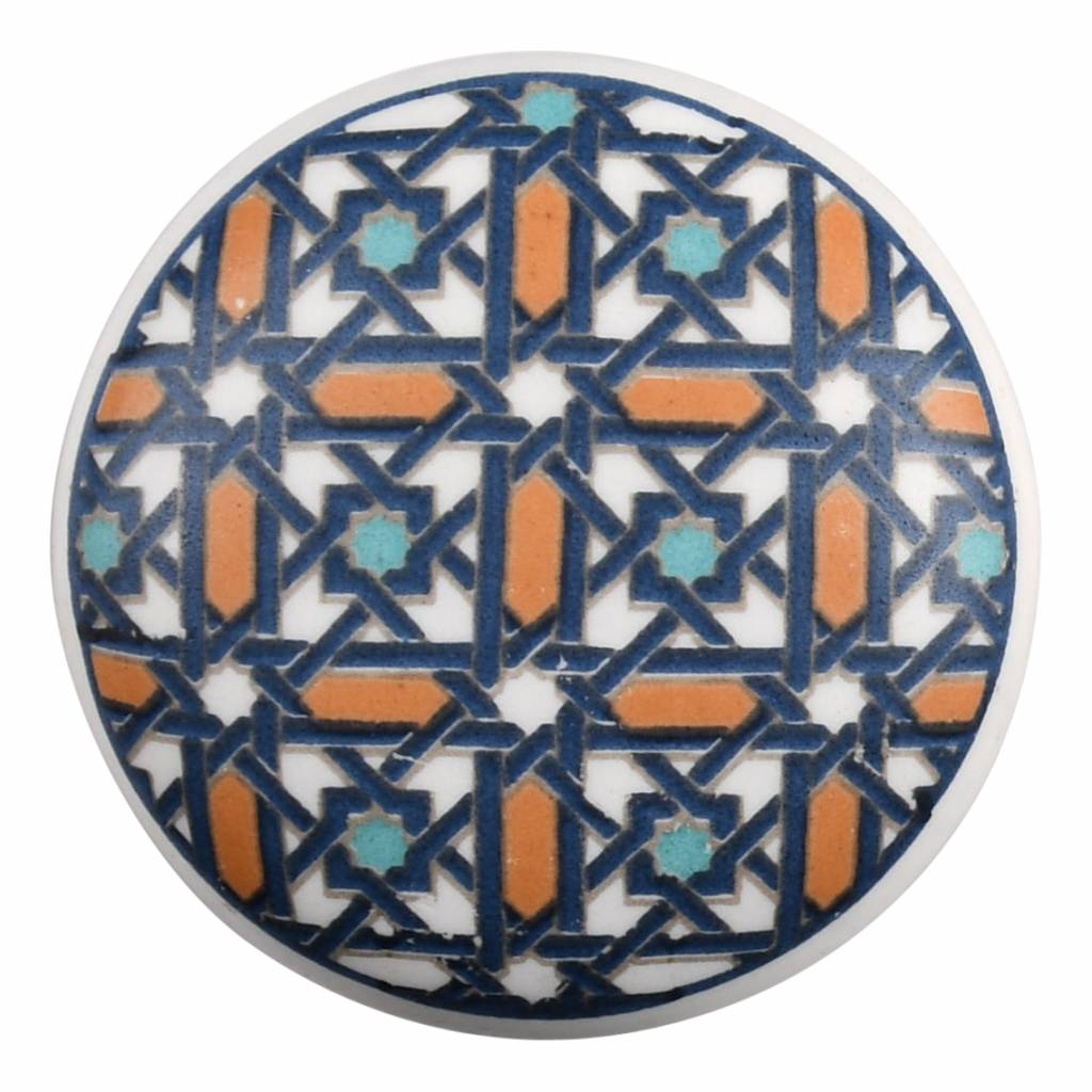 Porseleinen kastknop met blauw-oranje mozaïekpatroon