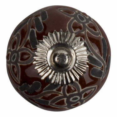 Meubelknop 40mm reliëf bruin/zwart bloemen