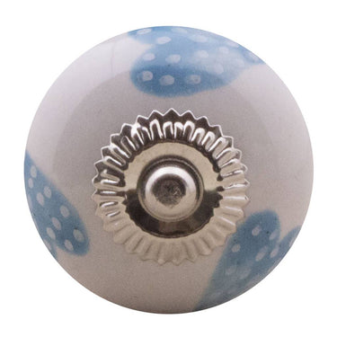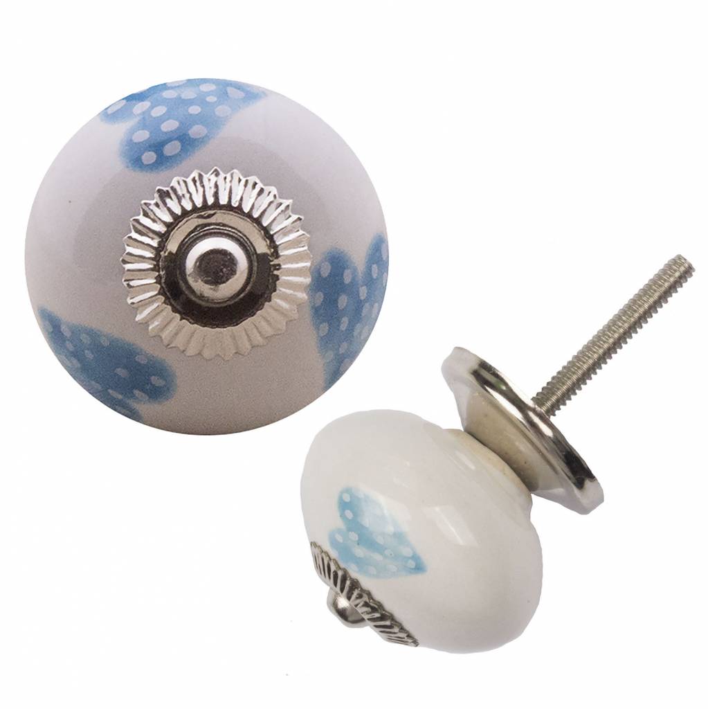 Meubelknop 40 mm – wit porselein met lichtblauwe hartjes