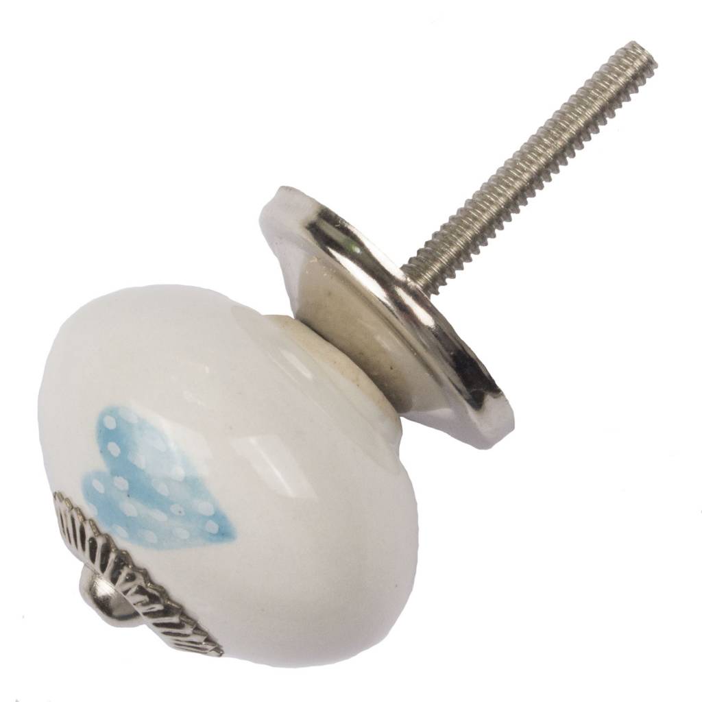 Geef je meubels een speels en elegant accent met deze porseleinen meubelknop in wit met lichtblauwe, gestippelde hartjes. Het glanzende porselein met zilverkleurig beslag past moeiteloos bij landelijk, vintage en moderne interieurs—en doet het extra leuk in de kinderkamer.