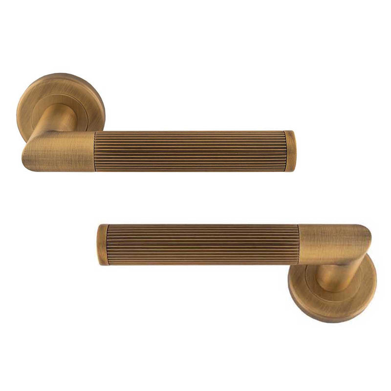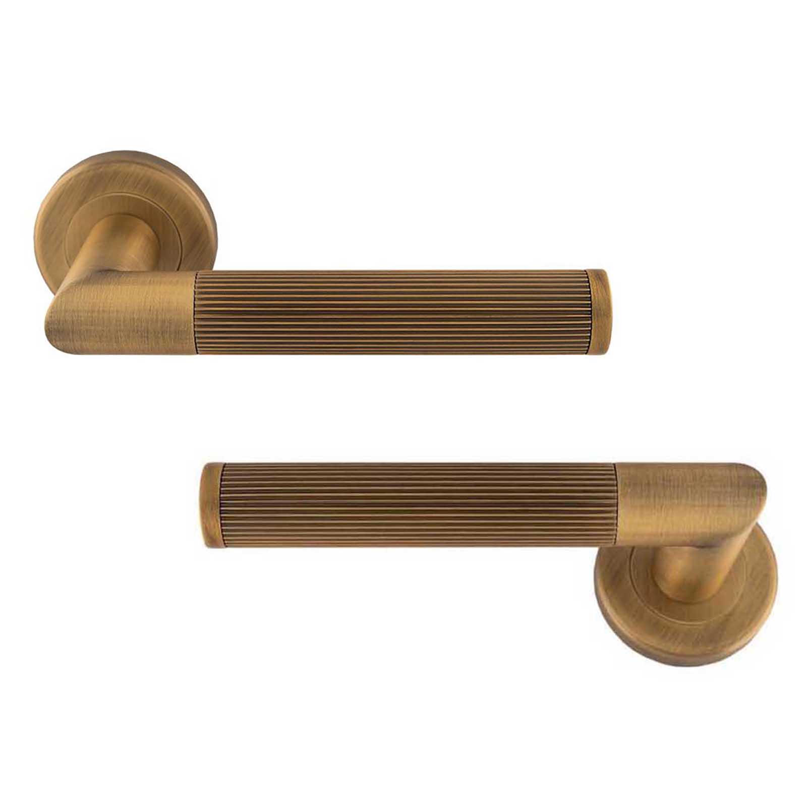 Deze Serozzetta "Trend Lines" deurkruk combineert eigentijdse elegantie met een subtiel industrieel randje. De fijne ribbelstructuur en afgeschuinde rozet geven deze moderne deurklink een strak en luxe uiterlijk. Verkrijgbaar in Zwart, Antiek Messing en Chroom Nikkel, waardoor hij moeiteloos past in uiteenlopende interieurs – van minimalistisch tot hotel chic.