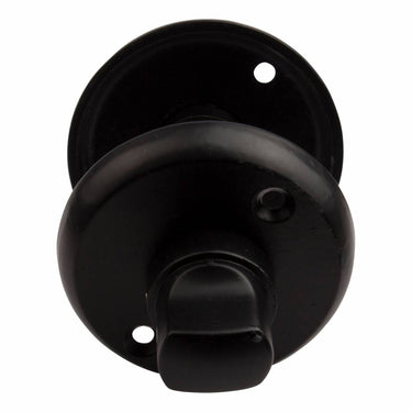 Deze WC-sluiting van gietijzer in zwart combineert een tijdloos ontwerp met stevige functionaliteit. De set is geschikt voor toilet- en badkamerdeuren en beschikt over een muntopening voor noodontgrendeling vanaf buiten—praktisch en veilig in huis, B&B of horeca.