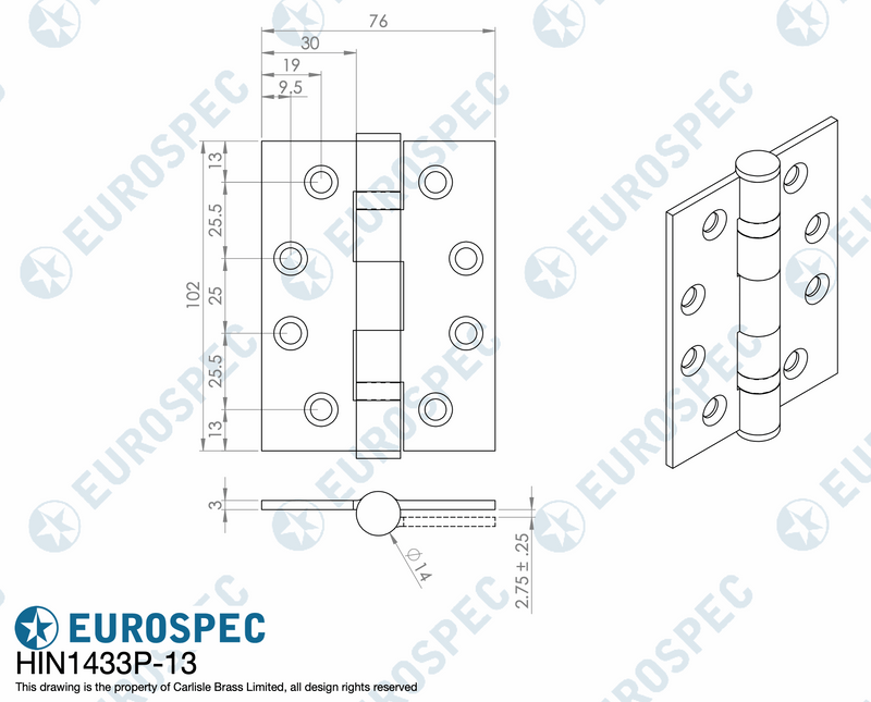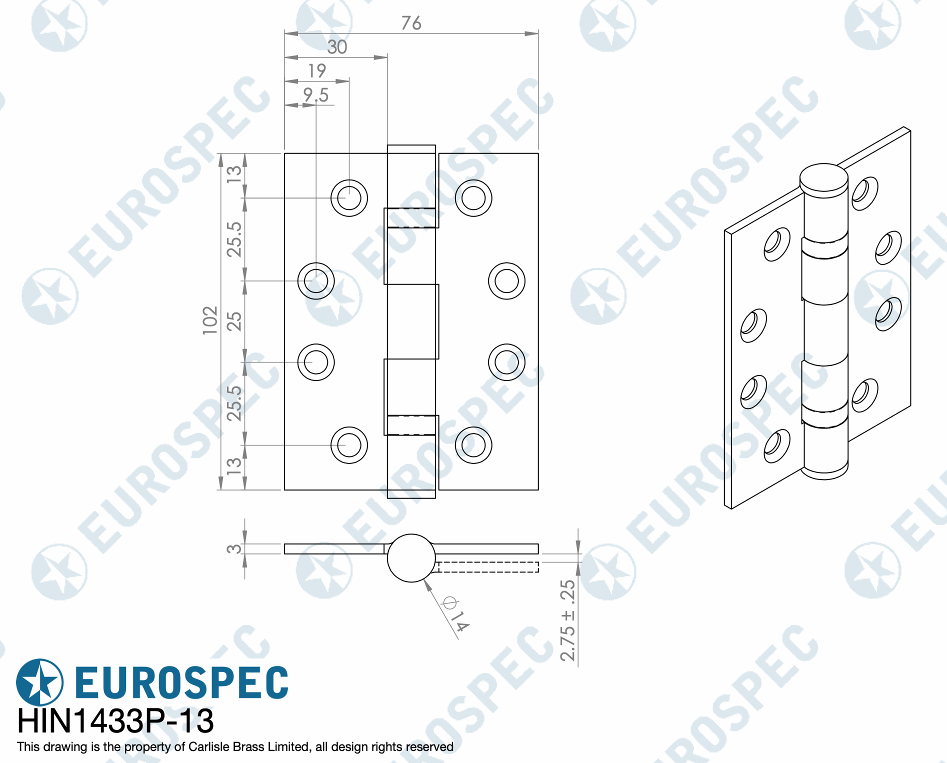 Een mooie deur verdient een scharnier dat even stijlvol is – en dat krijg je met dit Eurospec bladscharnier van 102 x 76 mm. Dankzij de dubbele kogellagers opent en sluit de deur soepel en vrijwel geruisloos. Dit scharnier is gemaakt van stevig staal en ontworpen voor dagelijks intensief gebruik.